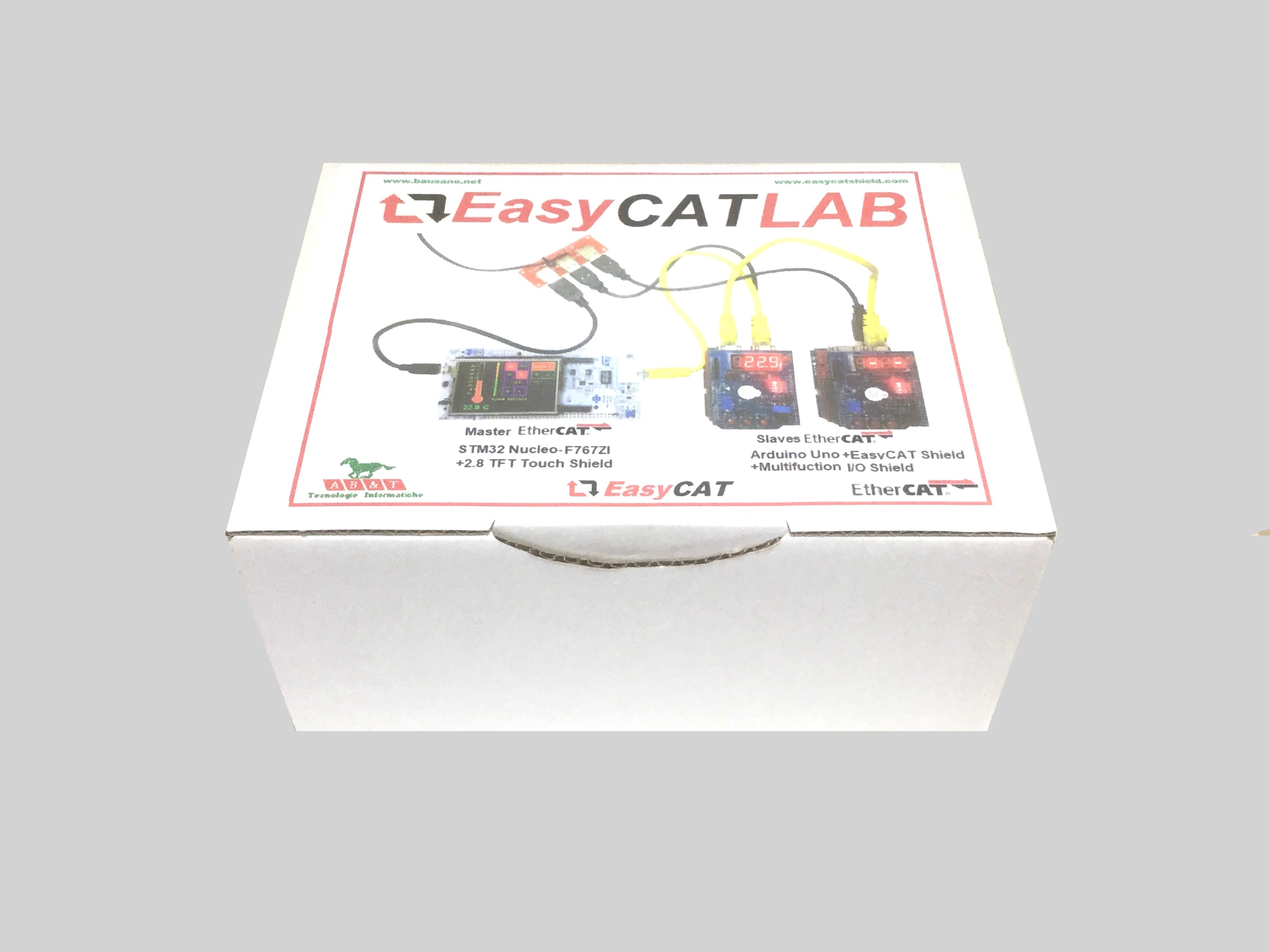 L'EasyCAT LAB è un sistema completo educativo e sperimentale EtherCAT®, composto da un master e due slave, consegnato in una scatola contenente le seguenti parti