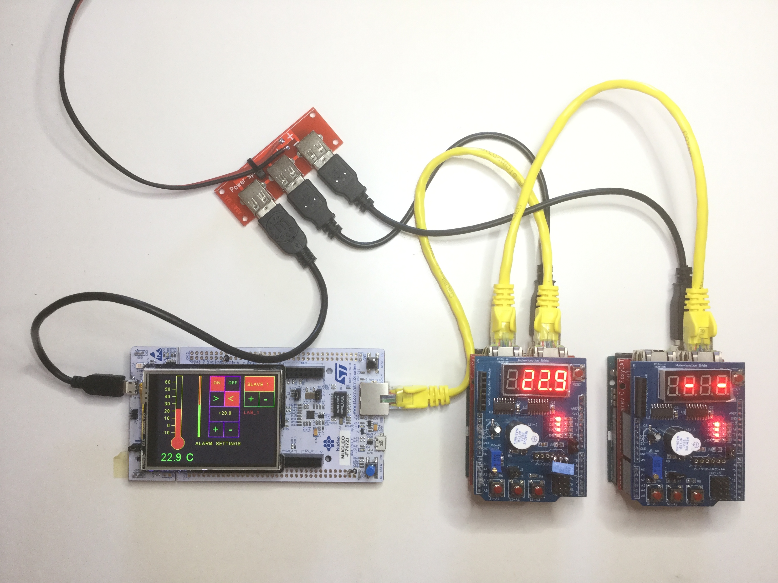 - Master: STM32 Nucleo F767ZI + TFT 2.8" con touch screen
