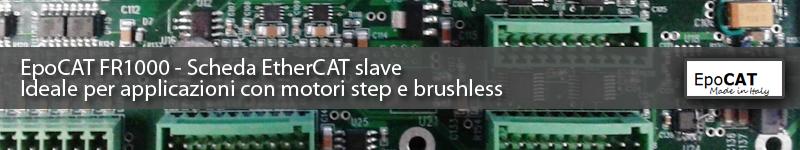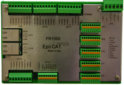La scheda è compatibile con il protocollo EtherCAT. Con una frequenza massima di uscita che può arrivare fino ad 1MHz per la FR1000 e 4MHz per la FR4000, è ideale sia per applicazioni con motori step, sia per applicazioni con motori brushless pilotati in treno di impulsi. La scheda gestisce fino a 5 assi in frequenza, 4 input, 2 output, 1 DAC 12 bit e 2 ADC 12 bit.