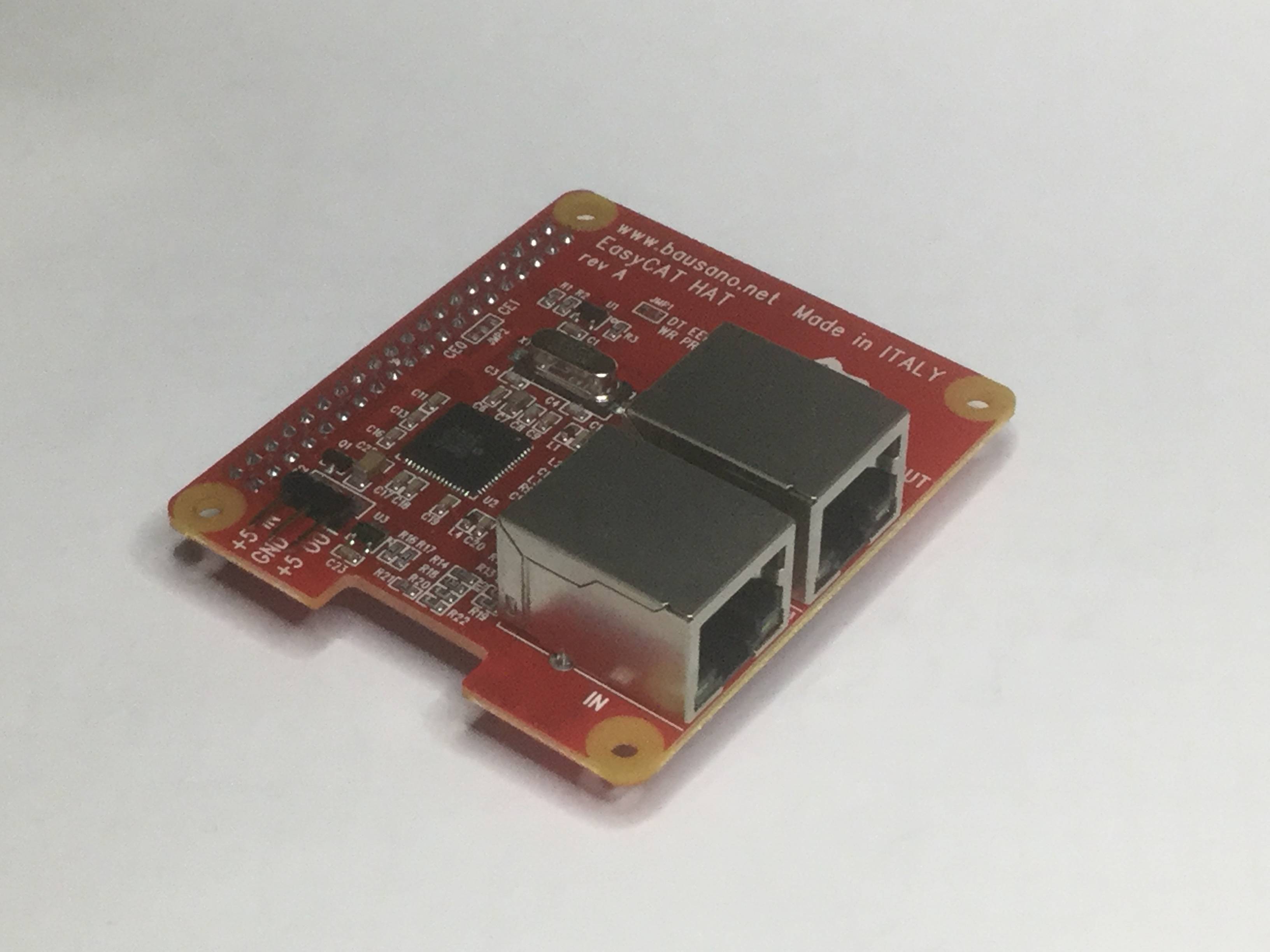 L' EasyCAT HAT permette di scambiare sul bus EtherCAT® 32 byte in ingresso e 32 byte in uscita, configurabili fino a 128 byte. La comunicazione viene gestita totalmente in Hardware e lo scambio dati con il processore avviene tramite SPI.L' EasyCAT HAT supporta tre tipi di sincronizzazione: Free RUN, SM Sync e Distributed Clocks.